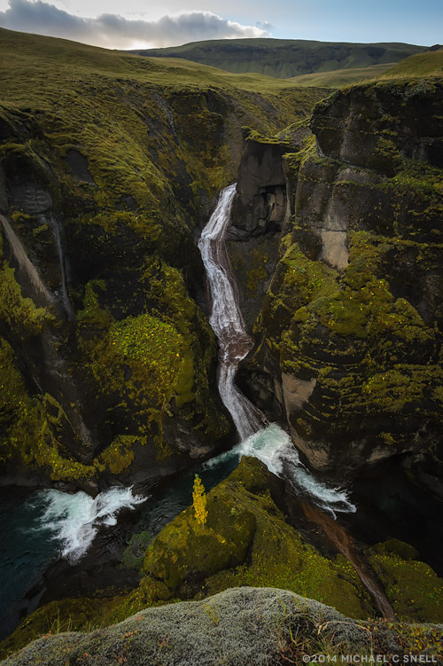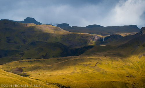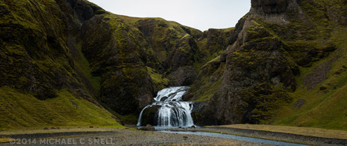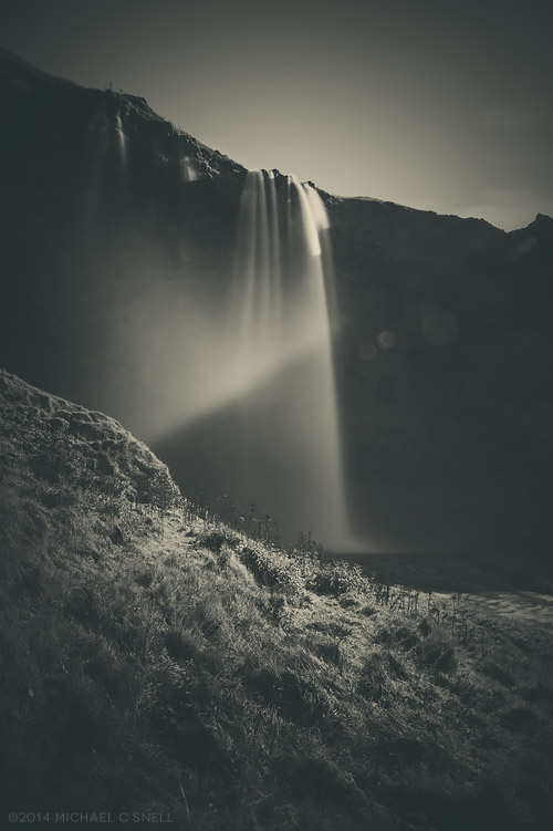 I finally arrived back to intersect with Highway 1 and soon found myself near the falls I’d shot the afternoon before — Foldafoss. Since I had actually been thinking that those falls would have looked nice in gloomier weather, I thought it was worth a shot to go back up my gravel road a bit to see how they looked in the low clouds. I was so glad that I did as the conditions were perfect and I got several shots of the falls that rank among some of my all-time favorites. It began to rain while I was finishing up and the clouds sank ever lower as I drove back west. The conditions worsened to the point that I could only see a few yards and the mountains and ocean views were lost to me for the rest of the day. I rolled into Vik for the night and scrubbed all my photography plans due to the rain and fog. Skaftafell and the other shots I’d saved for the ride back had to be scrubbed as well. The shootout period continued until 5:00 the following afternoon, but I didn’t get another single frame that I felt was worth entering. Hard to feel too bad about it, though, when I finished up day 4 with these shots of Foldafoss before the sky fell: