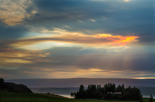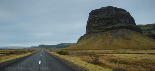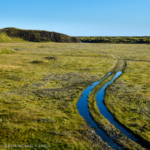 I finished up in town and began driving back west — I was officially on my way back to Reykjavik, but had plenty of stops in mind for along the way. First, I decided to stop and shoot the lake that I’d found at the top of the pass earlier in the morning. In the distance you can see what I’m assuming is more smoke from the volcano erupting not far away: