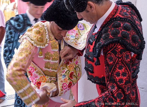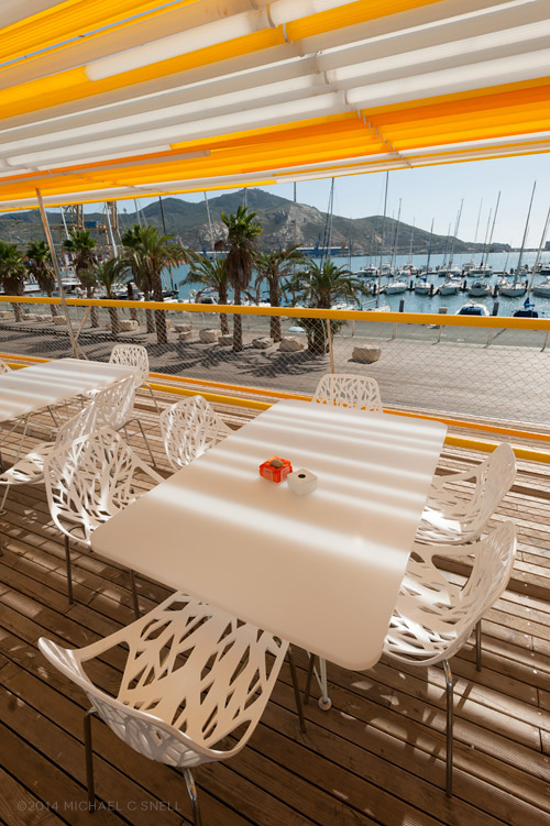 The morning of my first full day in Valencia began with breakfast on the upper floor of the Astoria Palace Hotel, which had a great view overlooking the historic center of the city. Next, we walked a few short blocks to the Mercado Central, Valencia’s central market. Along the way, marveling once again at the architecture, and the inclusion of “dog parking” outside some of the shops.
