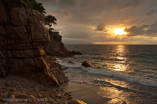 The spot was perfect as it allowed for several shooting opportunities. Nearby hot springs had kept this body of water open and the stillness made for perfect reflections of the nearby mountains — including Mount Rundle shown at the right. Ice around the edge of the lake provided a good surface to shoot from as well as some nice leading lines and foreground elements. in other areas patches of golden reeds broke the surface of the water giving some nice warm color and a very different look than shots that were dominated by the ice. In the end I was able to grab lots of different images that don’t all look like they were shot in the same place or on the same evening. A very versatile location. What a great way to end a day.