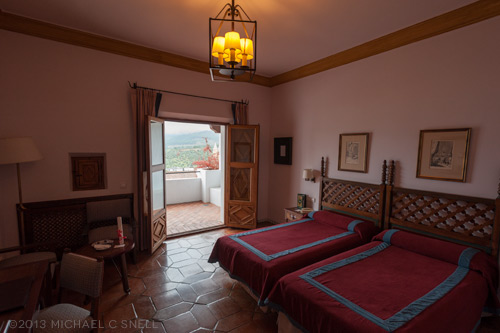 I thought I’d follow up on my last post with a few shots from my room at the Parador de Guadalupe. As I mentioned before, we stayed in Paradores most of our nights in Spain and they never disappointed. Each is unique architecturally, food/service was excellent, and you just couldn’t beat their locations. However, of all of them I encountered, I think I was most taken with the balcony view from my room in Guadalupe. I had very little time to spend in the room, but both sunset and sunrise found me out on the balcony, photographing that view. Sometimes you have to really work hard to find the right location — the perfect angle — and sometimes it’s just handed to you.